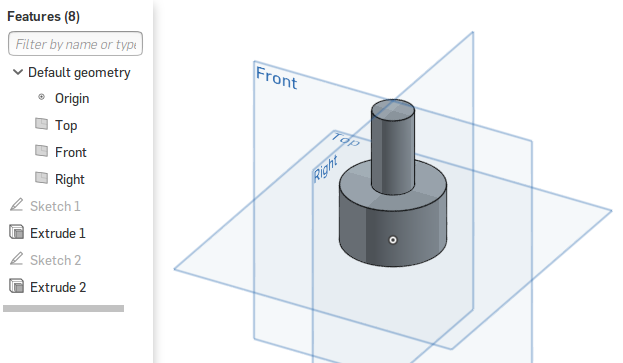 Haga clic en << Bosquejo >> y seleccione la cara superior de su parte 3D, aparece en la columna izquierda debajo de Extrusión 1 , el nuevo Bosquejo 2.